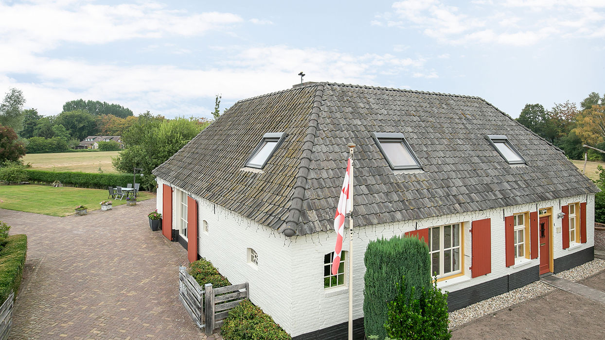 Ook hier stralen de rode deuren je tegemoet in mooi contrasterende witte omlijsting. Hier vind je de drie overige slaapkamers, elk zeer ruim ondanks het schuine dak. Dankzij de hoge hoek van het dak blijft er overal een boel loopruimte over en hoef je er nauwelijks rekening mee te houden qua inrichting.